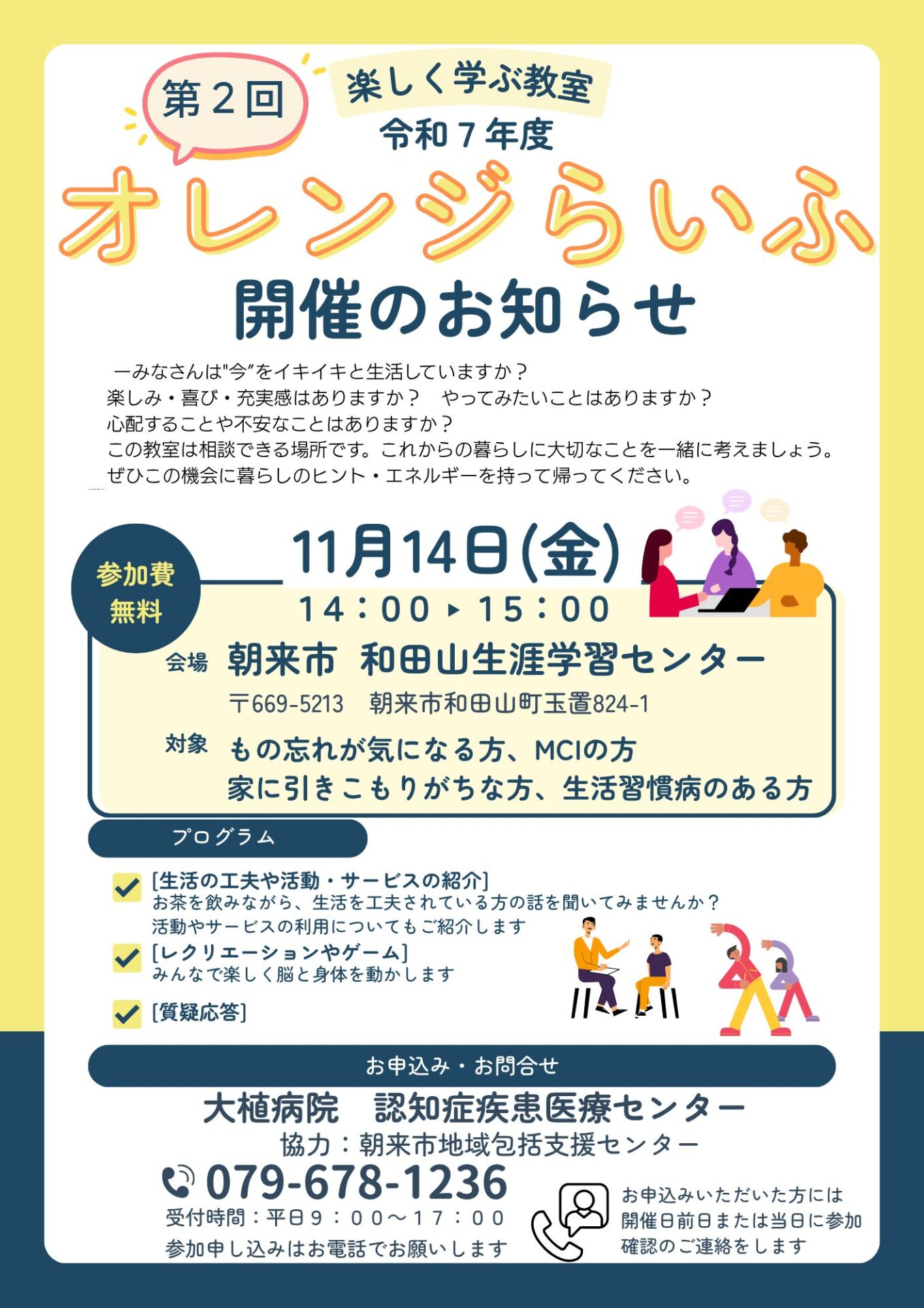 楽しく学ぶ教室「オレンジらいふ」第2回目開催のお知らせ