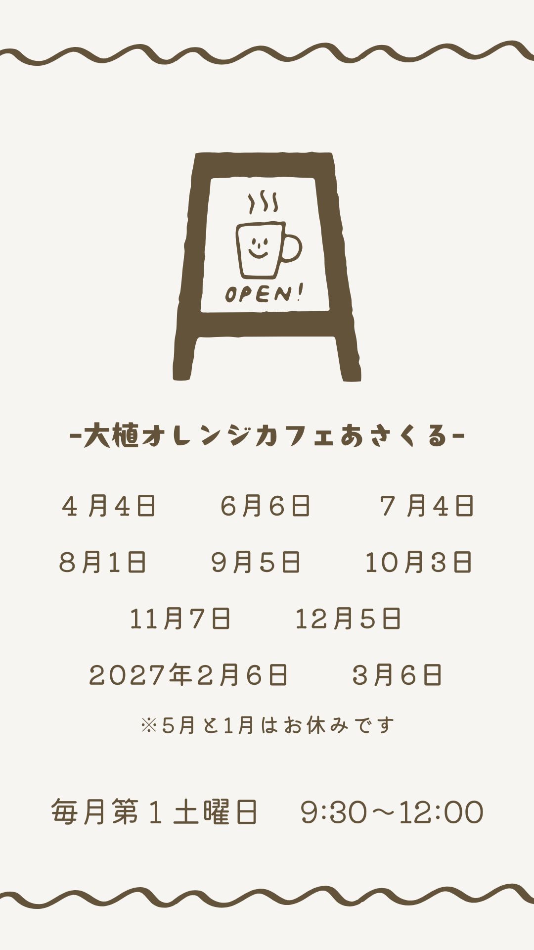 令和8年度 大植オレンジカフェ「あさくる」開催日のご案内